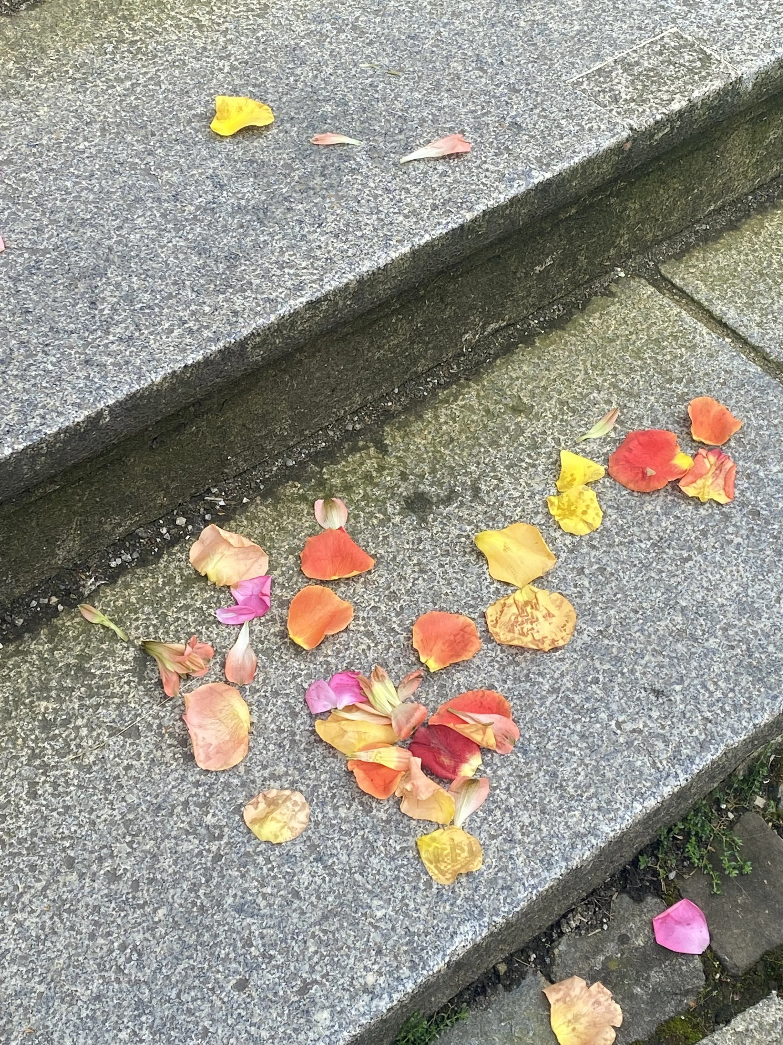 So I took some photos after my mama and I saw the flowers thrown high into the sky, floating down the same as the bride and groom coming hand-in-hand down the steps; here, these petals frame a beautiful allegory to their same val(h)ues) while acknowledging their individual bodies: